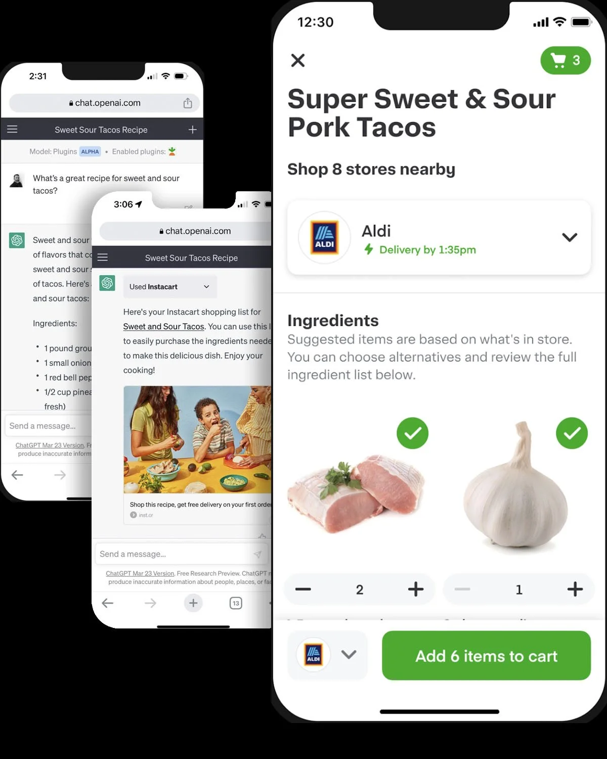 OpenAI invited Instacart to be an early partner in their ChatGPT plug-in work. We designed an experience that allowed customers to seamlessly purchase all of the ingredients needed for a LLM generated recipe.